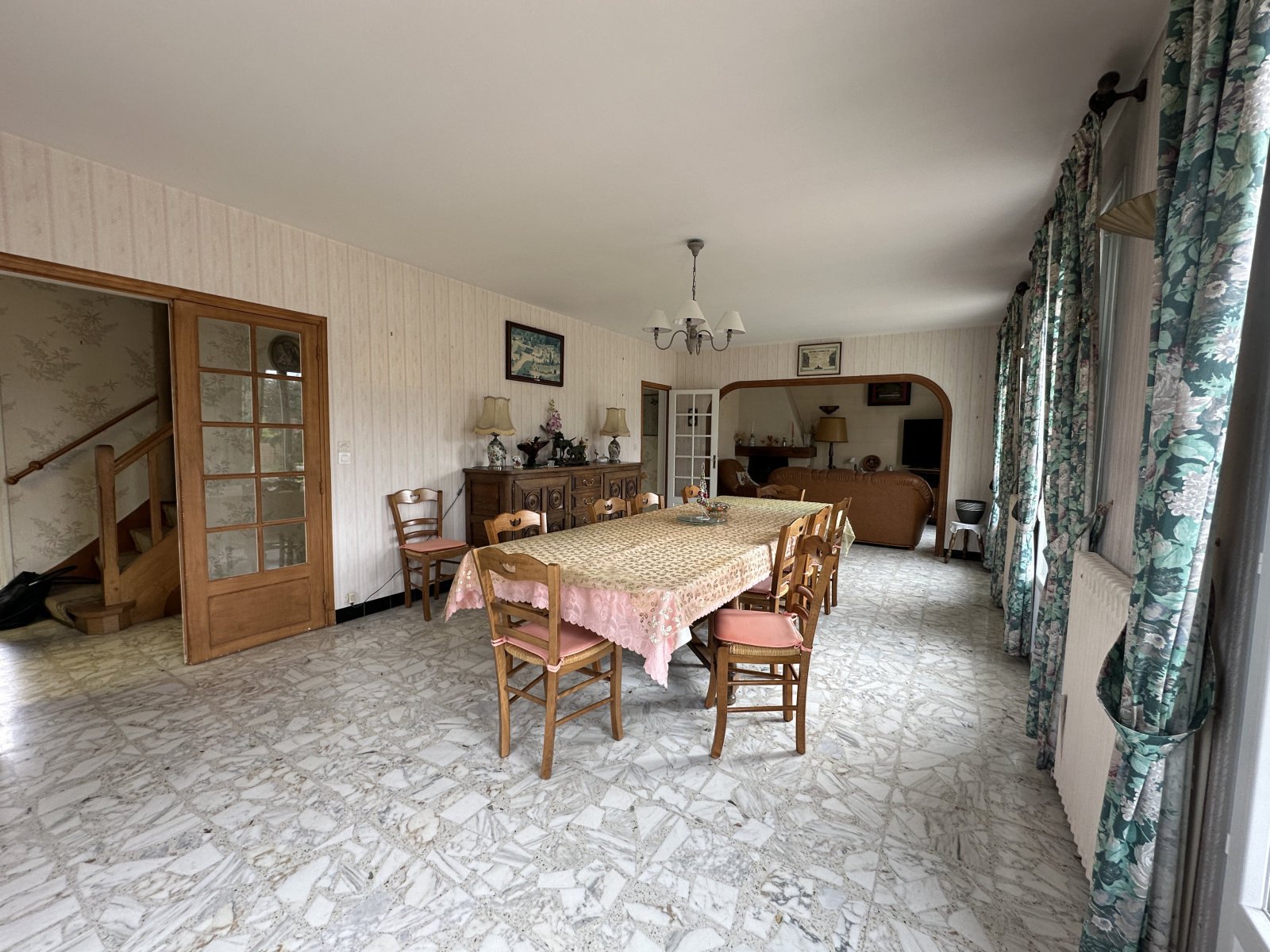 cette belle maison traditionnelle d'environ 130 m² comprenant une entrée, un séjour/ salon de + de 40 m² , une cuisine indépendante avec coin repas , une salle de bains avec baignoire, une chambre, un wc A l'étage 3 belles chambres, un wc avec point d'eau.
